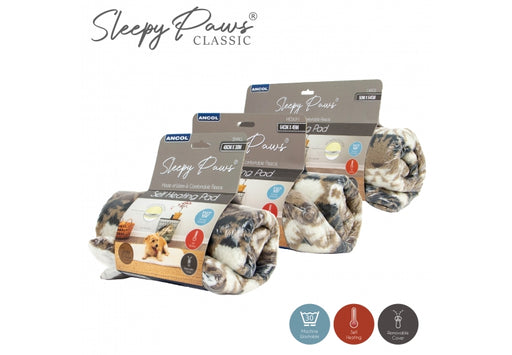 S 48 x 38cm | M 64 x 49cm | L 90 x 64cm The Ancol Sleepy Paws Self-Heating Pet Pad is an innovative creation that warms your pet and will qui...