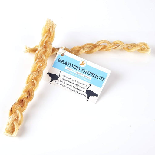 Single 100% Ostrich tendon, braided High lean protein very LOW fat Excellent dental hygiene that cleans gums and flosses teeth Hypoallergenic Nove...