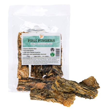 75g Made from 100% cod fish skins in UK Rough texture which help remove tartar from dogs teeth Have a taste dogs adore Hypoallergenic Grain Fr...