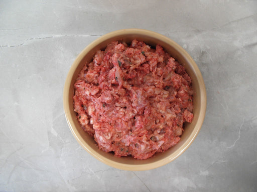 500g  An 80/10/10 mince containing: 50% Chicken & Bone, 40% Lamb, 5% Beef Spleen, 5% Beef Liver Minced through a diameter 10mm mincing plate to...