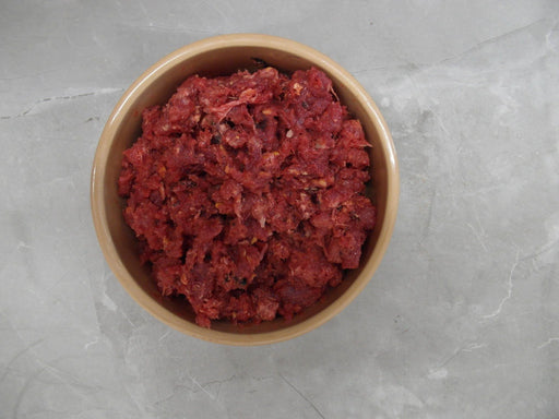 500g An 80/10/10 mince containing: 50% Chicken & Bone, 40% Lamb, 5% Beef Spleen, 5% Beef Liver Minced through a diameter 10mm mincing plate to...