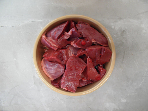 500g Hand-Diced British Pig Heart, flat packed in a resealable ziplock bag Boneless diced heart, for complimentary feeding
