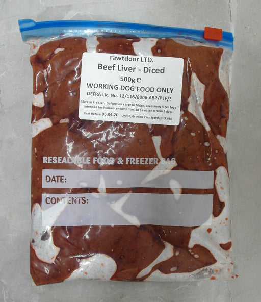 500g Hand-diced British beef liver, flat packed in a resealable ziplock bag