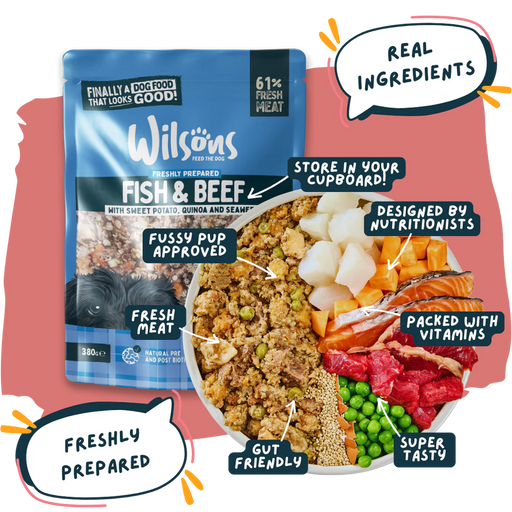 £3.85| /Wilsons Fish & Beef Fresh Dog Food